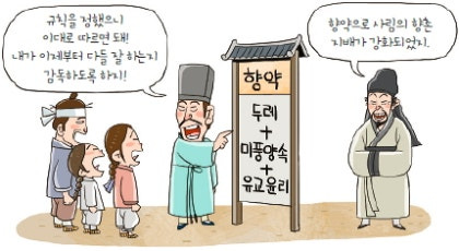 반면 지방의 세력이었던 사족(사림)은 유향소(여론 담당 기관)에서 향안을 관리하고 자치 지방 기구인 향회를 통해 지방을 운영하였는데 이 유향소를 통제하기 위하여 중앙에서는 경재소를 설치하였다. 또한 사족은 교육과 제사를 지내던 서원을 설립하였고, 농민을 통제하는 규약인 향약을 사용하였다. 이들은 중앙 조직들과 대립하는 세력이었다.