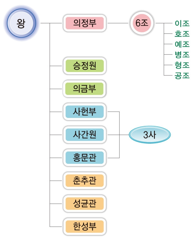 반면 왕을 견제하는 기관은 언론의 역할을 하는 3사로, 사간원, 사헌부, 홍문관이 있었다. (고려의 3사는 언론의 역할은 하지 않고 회계를 담당했다)