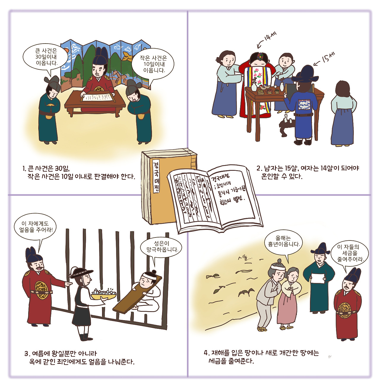 명나라의 법인 대명률을 통해 형법을, <경국대전>을 통해 민법을 관리하였으며 관습법은 거의 시행되지 않았다(고려와 반대).