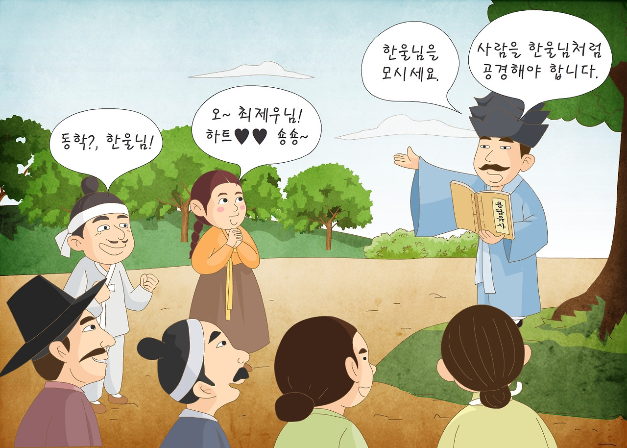 최제우가 창시하고 이후 최시형이 전파한 동학은 인내천과 시천주를 교리로 두었다. <동경대전>, <용담유사> 등의 도서가 있다.
