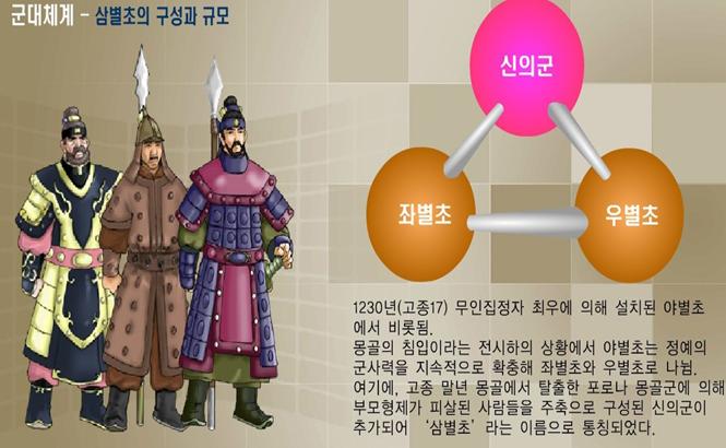 군사적인 부분은, 경대승이 도방을 창설하지만 이의민이 사용하지 않다가, 최충헌 때 다시 도방을 사용한다. 최우는 야별초를 삼별초로 통합시키기도 하였다.