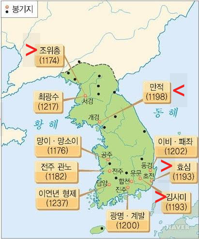 무신 정변 이후 불안정한 사회로 인해 전국에서 여러 저항 운동들이 일어난다.
